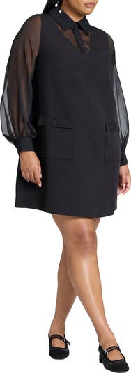 Elevate your day-to-night style with this mini shirt dress defined by sheer sleeves and relaxed tailoring. A mini length and cinched cuffs keep the look polished yet playful.