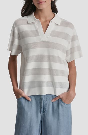 A relaxed fit furthers the casual comfort of this cotton-kissed polo made with slightly sheer stripes.