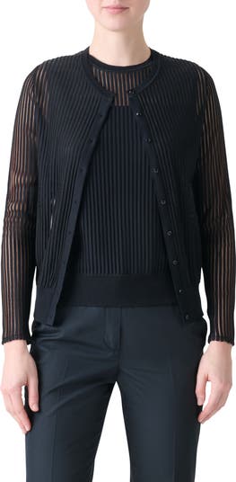 Sheer Stripe Silk & Cotton Blend Cardigan