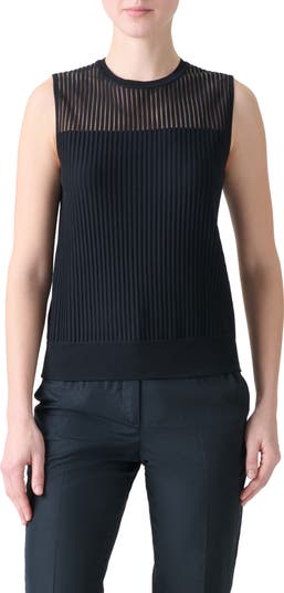Sheer Stripe Silk & Cotton Blend Sleeveless Sweater