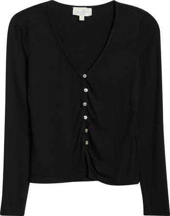 A V-neckline and split hem give this slim-fit button-up top its modern, easygoing edge. Soft stretch fabric keeps it comfortable, while the long sleeves and streamlined shape make it an effortless everyday piece.