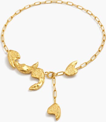 Your new go-to statement necklace! the Olidi Shell Necklace features five solid, corkscrew shells displayed on a large link chain which allows for the length to be changed to your desire. Summer is never over with our Quora collection. Featuring destroyed shells, rough textures and brushed finishes, these rustic pieces are reminiscent of days under the golden sun. made to make statements, these pieces can be worn all year round.