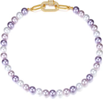 Transforming classic pearl necklaces to on-trend go-to pieces, This necklace shows its ability to carry any outfit. For minimalist allure, a colorful update of pearl strand features 3 colors of shell pearls to show its brilliance while a pavé carabiner lock acting as both a pendant and a clasp.