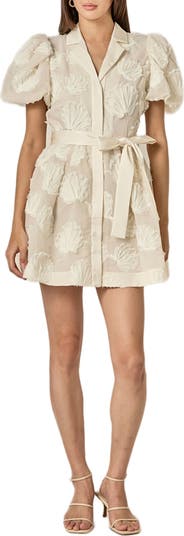 Shell Puff Sleeve Tie Waist Minidress