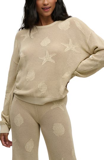 Jacquard shells bring coastal appeal to this relaxed-fit sweater made of an airy cotton knit with open stitches.