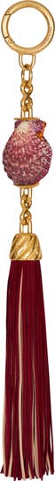 Shell tassel charm Setting, chain and snap hook in gold brass with Balmain engraving Real shell in the centre Two-tone suede tassel Main material: 100% calfskin Made in Italy Item: GN0RR279MZBW