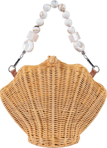 It's hard to decide if the shell shape or the novel top-carry handle material is the most adorable thing about this summery bag, but that's a very good problem to have.