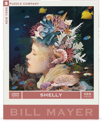 Immerse yourself in a serene underwater fantasy with Shelly, a 500 piece jigsaw puzzle featuring the stunning artwork of visionary illustrator Bill Mayer. Published by the New York Puzzle Company, this dream-like puzzle captures the profile of a peaceful woman whose hair flows into a spectacular coral reef, adorned with shells, sea creatures, and vibrant marine life. Perfect for fans of ocean themes, surrealist art, and meditative puzzles, Shelly offers a unique and calming experience as each piece reveals intricate details of aquatic wonder. This high-quality puzzle is crafted for both beauty and durability, making it a joy to assemble and a piece worth displaying. Discover a tranquil world beneath the waves with Shelly — a beautifully imaginative puzzle that brings the magic of the sea to life, piece by piece.