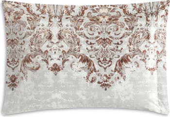 - Scrolls of the pattern decorate only the top of the duvet cover and pillowcases, leaving the light bottom with a pearly-grey transition of color, similar to the shades of Venetian plaster