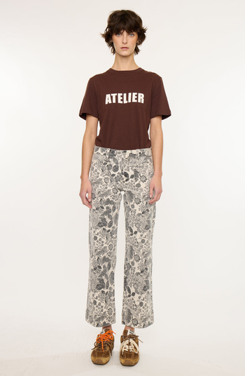 In a fun new style, we have Shera Mid Rise Ankle Wide. In a floral print this ecru style is meant to stand out. Ending at the ankle giving a slim wide silhouette, pair it with your favorite sneakers or sandals!