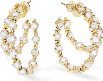 A double-hoop silhouette makes these earrings deliver twice the shine to casual and night-out fits.