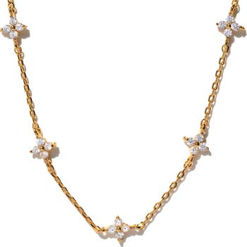 Shimmering cubic zirconia cluster in floral formations along this delicate chain anklet plated in shiny 18-karat gold.