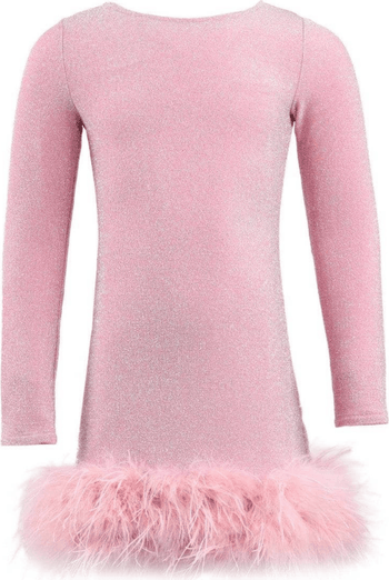 Make a statement in the Pink Shimmer Feather Dress, a glamorous piece designed for special occasions! Features a stunning shimmer fabric that catches the light beautifully for an effortlessly chic look.