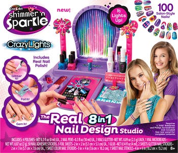 The Ultimate 8 in 1 Nail Art Fun! Design, Paint, Stencil, Glitter, Decorate, Foil, Sticker & Gem! A Rockin’ Nailtastic Light Up Extravaganza! Special Light Up Feature, Cool Colors Dance to Sounds! Create Salon Style Nails!
