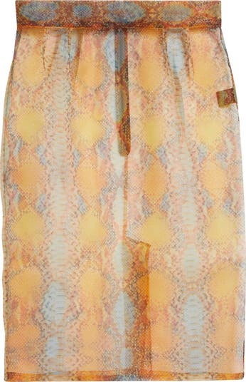 Shimmer Snakeskin Print Sheer Pencil Skirt
