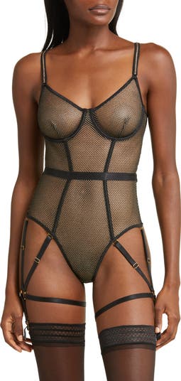 Shimmery Underwire Fishnet Teddy with Garter Straps