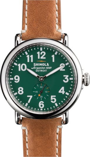 The first Shinola watch series ever made in Detroit offers expert craftsmanship and classic style in a round, handcrafted timepiece. The 46-piece, American-made quartz movement powers the time, while a double-curved sapphire crystal face protects the clean display. A solid steel case and premium topstitched leather strap complete the timeless silhouette, and a signature case back laser etched with a serial number adds a custom finish.