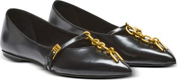 Shiny lambskin Sync ballet flats Pointed toe Strap with chain and embossed PB buckle Heel height: 1.5 cm Main material: 100% lambskin Made in Italy Item: GN1UF199LNPX