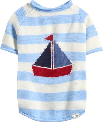 This striped sweater with an intarsia-knit ship ensures your furry pal is ready to set sail, even if the only water nearby is the bowl.
