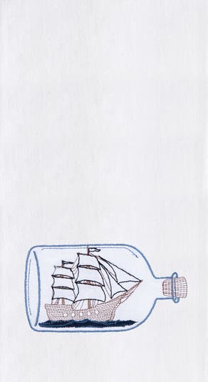 Ship In A Bottle Kitchen and Bathroom Embroidered Hand Towel