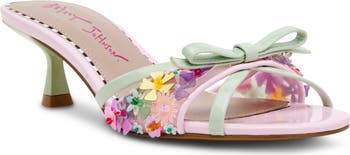 Dimensional flowers blossom atop a kitten-heel sandal that adds a breath of fresh air to your ensemble.