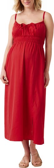 A ruched neck gives easy nursing access to this maternity dress made with a shirred waist that ensures your bump has plenty of room to grow.