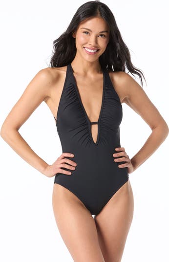 Shirred Plunge Neck One-Piece Swimsuit