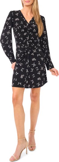 Gathering at the placket lends a modern touch to this trim and stretchy long-sleeve dress that falls right above the knees.