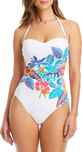 Shirred Strapless One-Piece Swimsuit