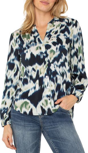Shirring along the back yoke gives a roomy fit to this stretchy, lightweight button-up shirt that's perfect for going from desk to dinner and everywhere in between.