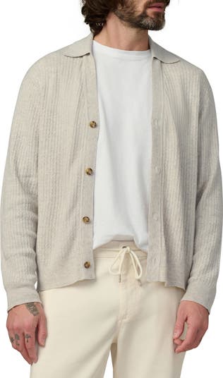Allover ribbing textures this collared cardigan made from a woolly cotton blend for softness and warmth.
