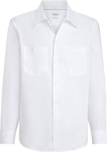 - Plain front closure with mother of pearl buttonsCamp collarTwo chest pocketsCuffs have one mother of pearl buttonEasy fit