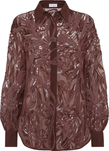 Brunello Cucinelli Shirt with dazzling floral embroidery, Main, color, Brown