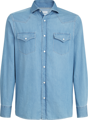 - Placket closure with snapsSpread collarTwo patch chest pockets with flap and buttonYokeButton cuffsEasy fit
