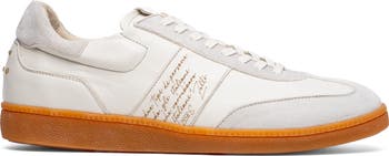 Smooth leather refines this Italian-made low-top sneaker uniting polished craftsmanship with a lightweight, fully cushioned footbed that supports confident streetwise movement.