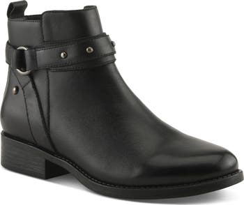 Polished studs add a hint of moto edge to this burnished leather bootie grounded by a comfort-cushioned footbed.