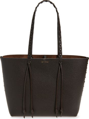 Beaded tassels and chunky leather topstitching along the handles and sides emphasize the artisanal fabrication of this Italian-crafted tote featuring a richly pebbled leather body and matching pull-out pouch.