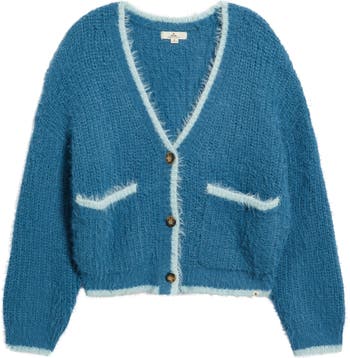 Contrasting tipping frames this cozy wool-kissed cardigan knit in a slouchy fit and popped with handy patch pockets.