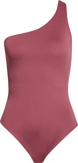 A shoulder-baring silhouette keeps you moving with confidence as you splash and swim in this one-piece swimsuit.