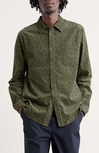 Shoreman Diamond Print Organic Cotton Corduroy Button-Up Shirt