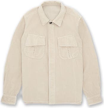 Overshirt SHORT is a unique garment made of corduroy, corduroy velvet and featuring front pockets with slanted flaps. This signature Fortela garment draws inspiration from the historic jungle jacket adopted by the U.S. Army during the Vietnam conflict, famous for its ruggedness and functionality. The reinterpretation of this military classic, guided by Alessandro Squarzi's inspiration and study, maintains the original spirit, combining practicality and distinctive style.Made of corduroy, corduroy velvet, the SHORT Overshirt guarantees durability and comfort. The quality and research of the material and the combination between them reflects Fortela's attention to detail and durability in its garments, offering a product that combines functionality and aesthetics. The fit of the SHORT Overshirt is designed to provide comfort and freedom of movement in all seasons. The classic collar and button closure give a versatile look suitable for a variety of occasions. Patch pockets on the chest, with a slanted flap, add a touch of style and practicality, while long sleeves with button cuffs allow further customization of the fit. It is available in two colors, milk and navy.The orange stitching, Fortela's distinctive trademark, on the left back enhances the design and is a symbol of craftsmanship and tradition: each garment is unique, carefully produced in Italy, and carries Fortela's commitment to quality and style.