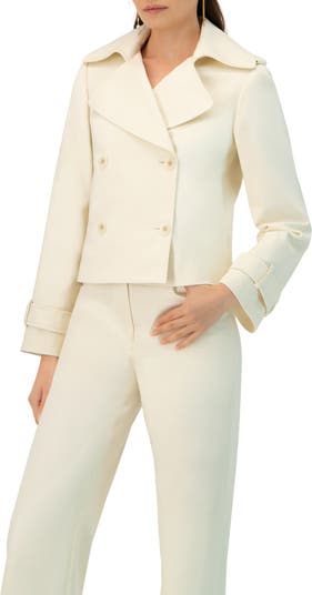 Stylish short trench coat featuring front buttons and a classic lapel design.