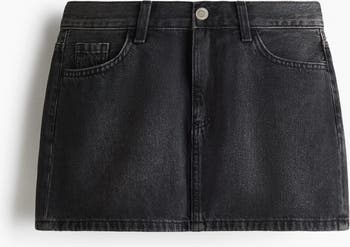 Short, 5-pocket skirt in rigid cotton denim featuring a regular waist with a zip fly and button.
