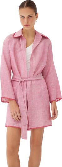 Refine your collection of beach-ready staples with our Blake Rose Linen Mini Kaftan. Designed from crisp and breathable 100% linen, this kaftan is a light and luxurious addition to your summer wardrobe.Cut to a slightly oversized silhouette, you can use the self-fastening belt to tie this shirt to find your most comfortable fit. Frayed hemlines and a hand-embroidered Labeca logo on the collar make for the most elegant finishing touches