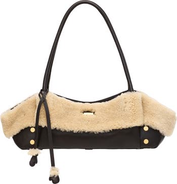 The label's fan-favorite Paul bag gets an update in a shorter, elongated silhouette, with plush shearling adding a cozy contrast to the black calfskin leather. The rolled handles are long enough to sling over your shoulder, while brushed hardware adds a hint of golden gleam.