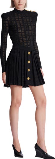 Short pleated skirt in plaid knit Waistband Decorative 'Lion Head' buttons on the front Visible zip fastening on the back with Balmain Paris-engraved slider Flared cut Model measures 180cm and wears a size 36 Main material: 77% viscose 14% polyester 8% polyamide 1% elastane Made in France Item: GF1LB664KJ34 100% of the viscose fibres used to make this garment come from certified, sustainably managed forests