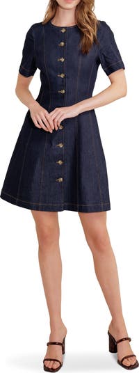 Denim goes luxe in this cotton-blend minidress with elevated seaming delivering a modern twist on a timeless A-line silhouette.