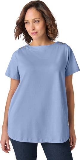 A relaxed, everyday tee with a graceful boatneck and subtle detailing, designed for easy comfort with a polished finish.