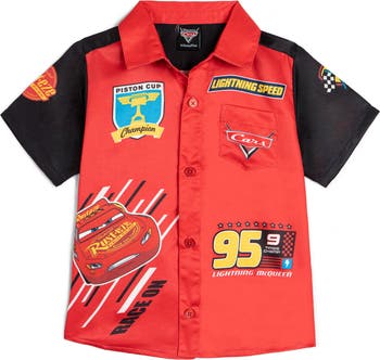 Add a little Disney magic to a hot and sunny day! This short sleeve button-up shirt shows off your kid's favorite Disney characters against a vividly colorful Hawaiian print background! With its fun tropical design and comfortable feel, let your kid go on an adventure with iconic characters like Mickey Mouse, Jack Skellington from Nightmare Before Christmas, Lightning McQueen and Mater from Cars, and Woody, Buzz Lightyear, and the rest of the toys from Toy Story!
