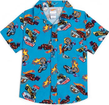 Get ready to race to the finish line in these cool family matching Hot Wheels button-up shirts! These soft and comfy short sleeve shirts come in toddler, kids, and adult sizes and feature a vibrant all-over print of the iconic Hot Wheels logo and colorful artwork of classic racing cars that you and your car enthusiast will love to wear! The whole family can join the Hot Wheels fun in fashionable matching family tees that are perfect for a fun vacation, beach adventures, cute family pictures, and an everyday stylish look! HOT WHEELS (TM) and associated trademarks and trade dress are owned by, and used under license from, Mattel. (c) 2024 Mattel.